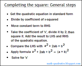 - Take the coefficient of 'x', divide it by 2, square it, and then add it to LHS and RHS of the equation