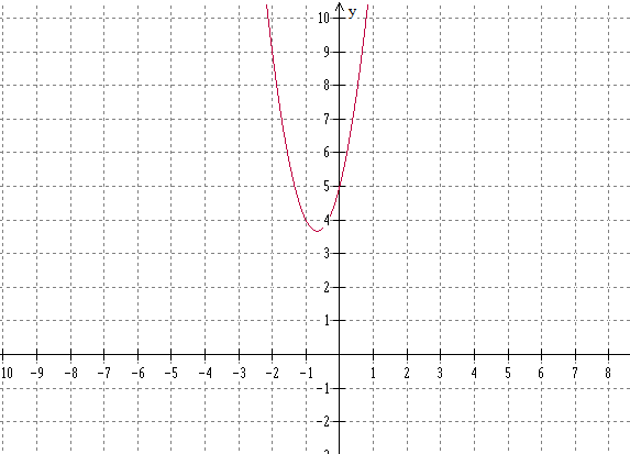 x = -4/6 = -2/3So the function f(x) = 3x^2 + 4x + 5 has a critical point at x = -2/3. Graphically, this means that there is a relative maximum or a relative minimum at this point. The following graph of f(x) has a relative minimum (vertex of the parabola) at x = -2/3